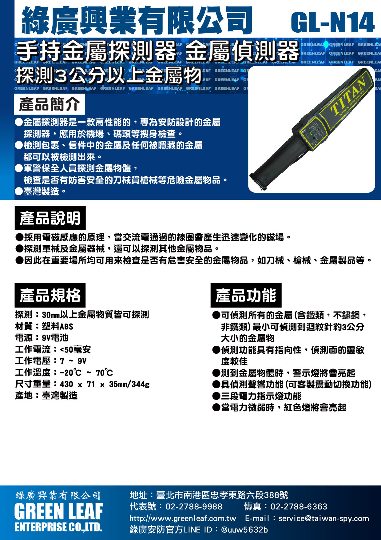 可偵測所有的金屬(含鐵類,不鏽鋼,非鐵類)最小可偵測到迴紋針約3公分大小的金屬物