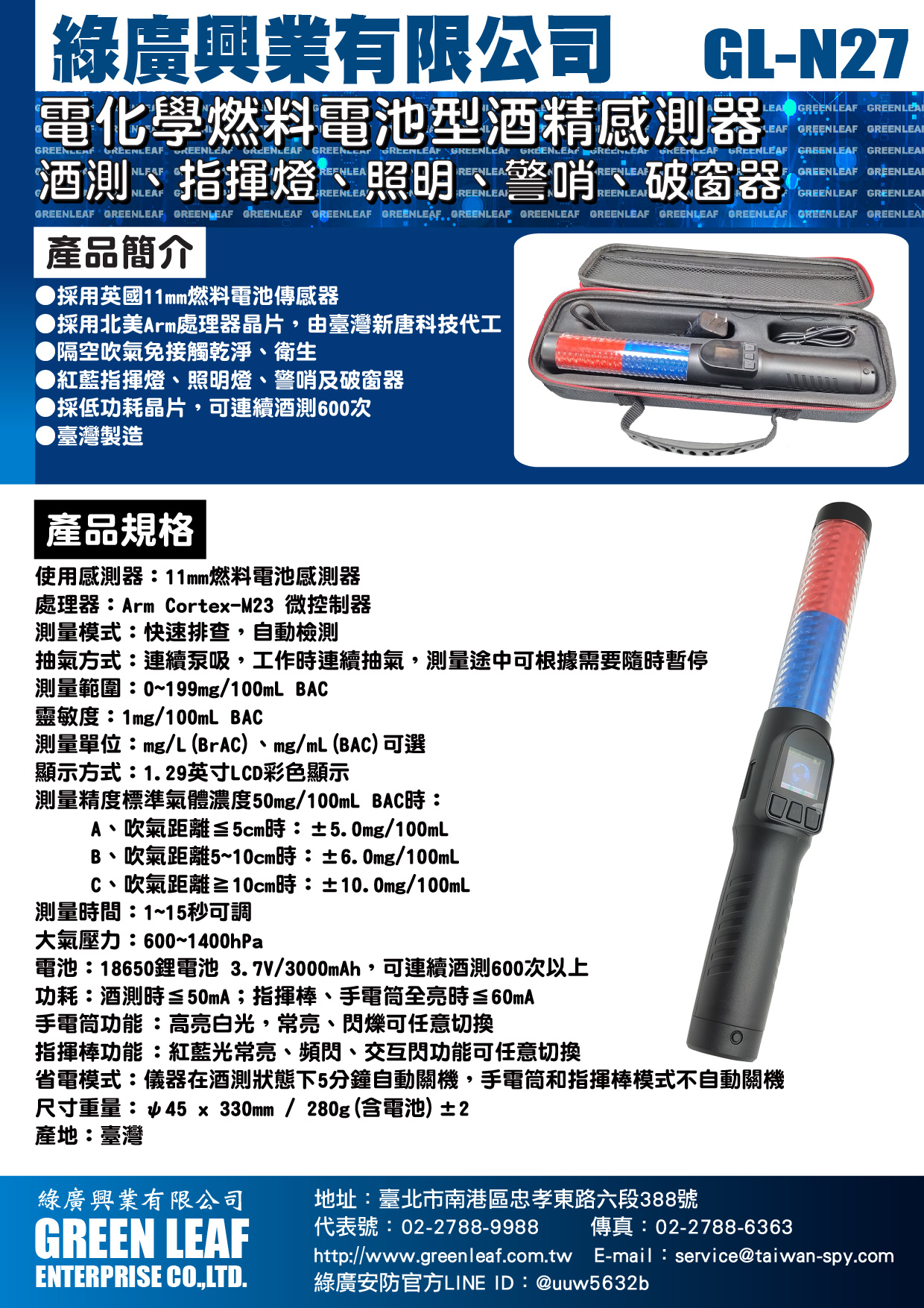 功耗:酒測時≦50mA;指揮棒、手電筒全亮時≦60mA