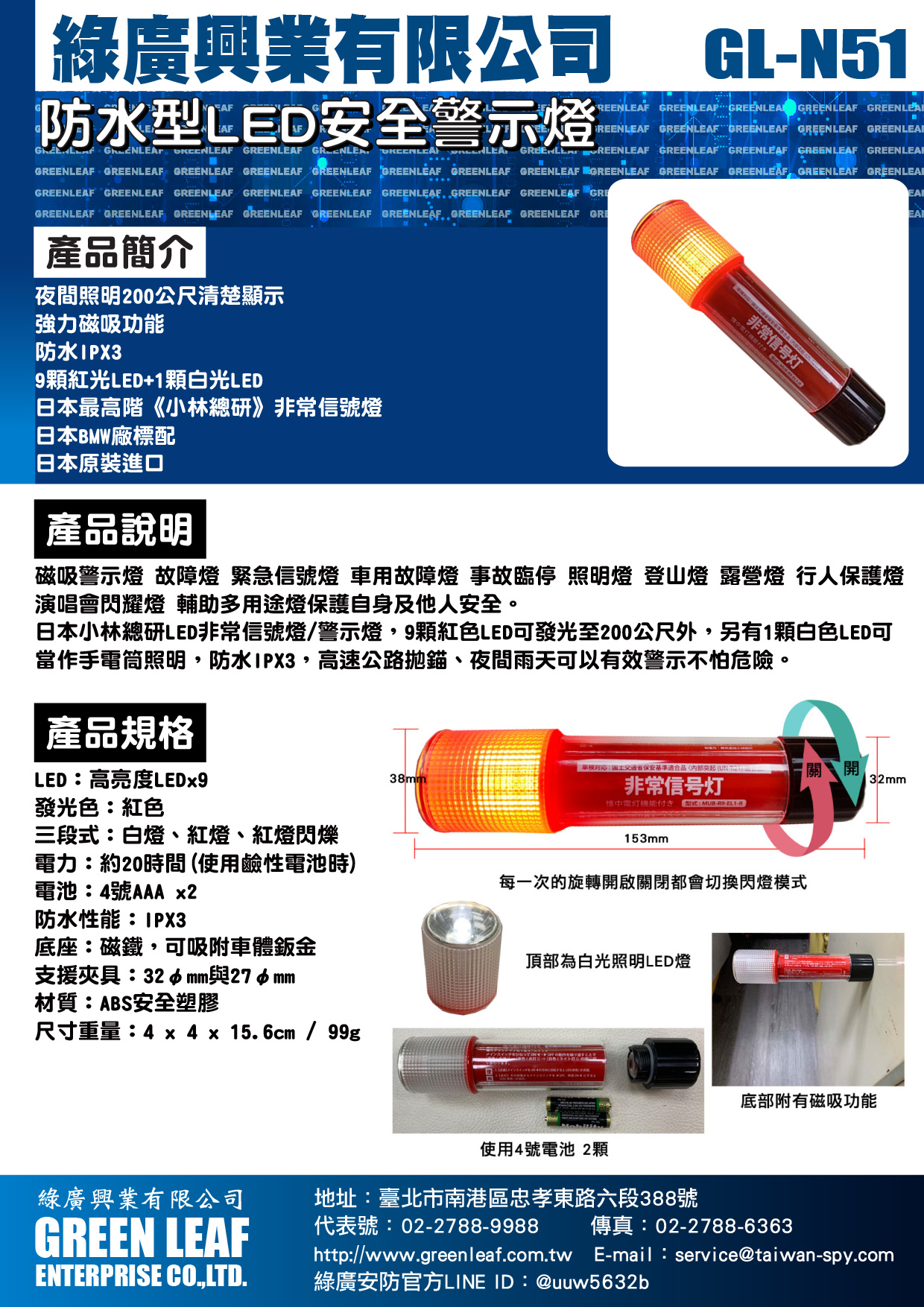 日本小林總研LED非常信號燈/警示燈,9顆紅色LED可發光至200公尺外,另有1顆白色LED可當作手電筒照明,防水IPX3,高速公路拋錨、夜間雨天可以有效警示不怕危險