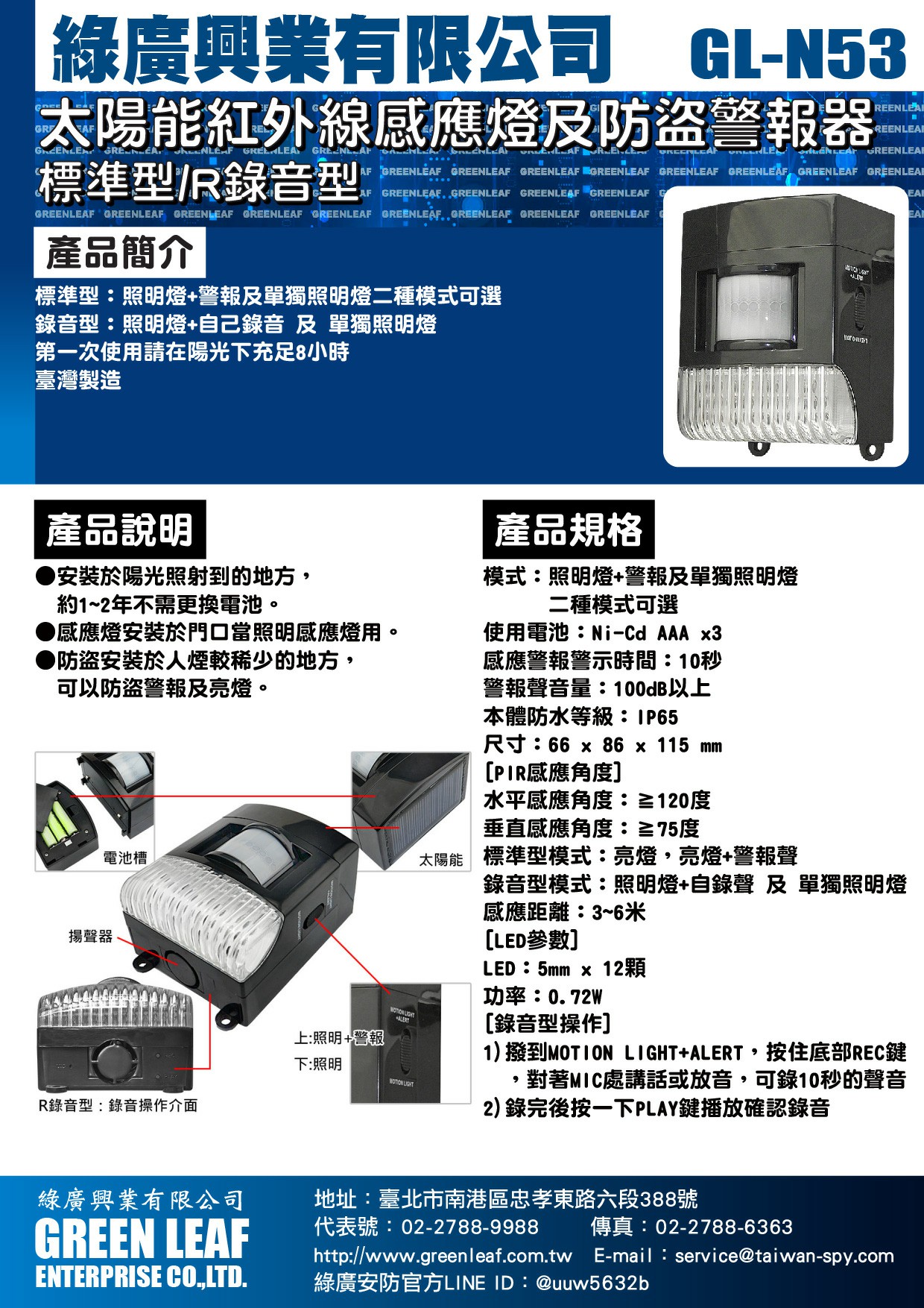 防盜安裝於人煙較稀少的地方,可以防盜警報及亮燈。