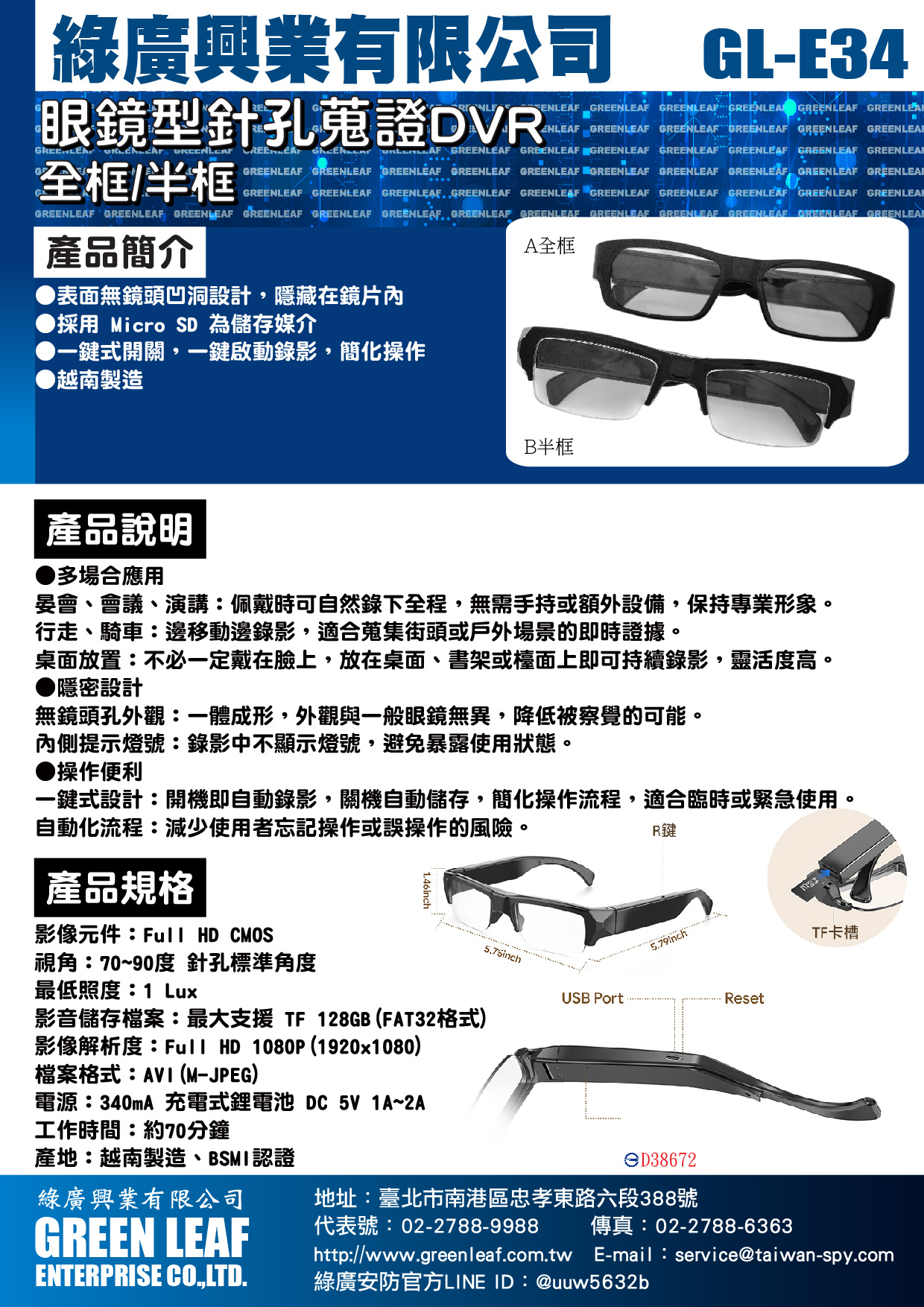 無鏡頭孔外觀:一體成形,外觀與一般眼鏡無異,降低被察覺的可能。
