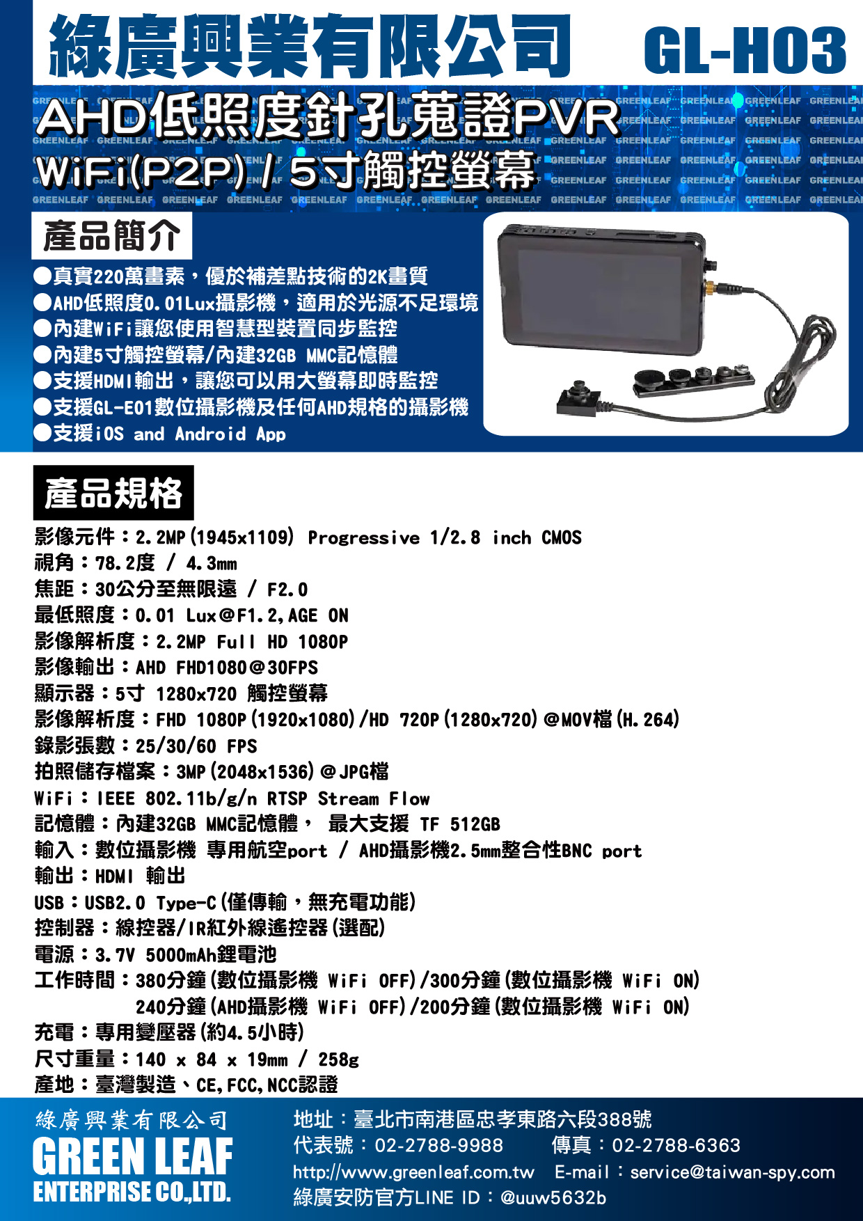記憶體:內建32GB MMC記憶體, 最大支援 TF 512GB(數位攝影機約4000分鐘/AHD攝影機約5000分鐘)
